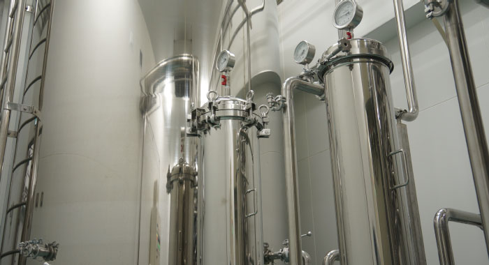 ここまでの検査に合格したボトルだけを、14工程の洗浄殺菌を行い使用します。最後に天然水ですすぎ(共洗い)をして、ボトルの準備は完了です。