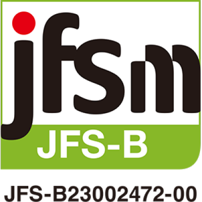 さらに高レベルな品質管理体制を構築するため2023年、日本発の食品安全マネジメントシステム「JFS-B規格」の適合証明を取得しました。
