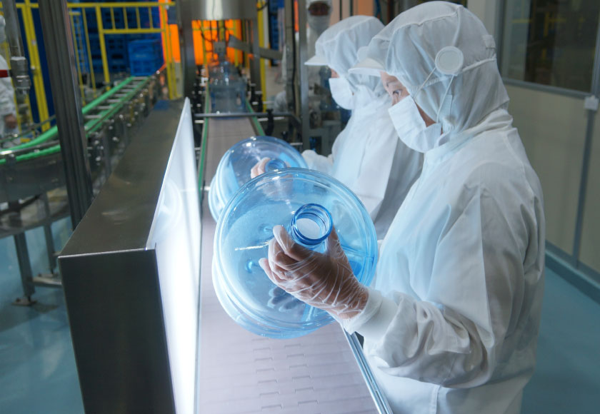 天然水本来のおいしさを守り、安全にお届けするため、富士河口湖工場では、国際水準の食品安全規格HACCP(ハサップ)等に基づく衛生管理を実施しています。