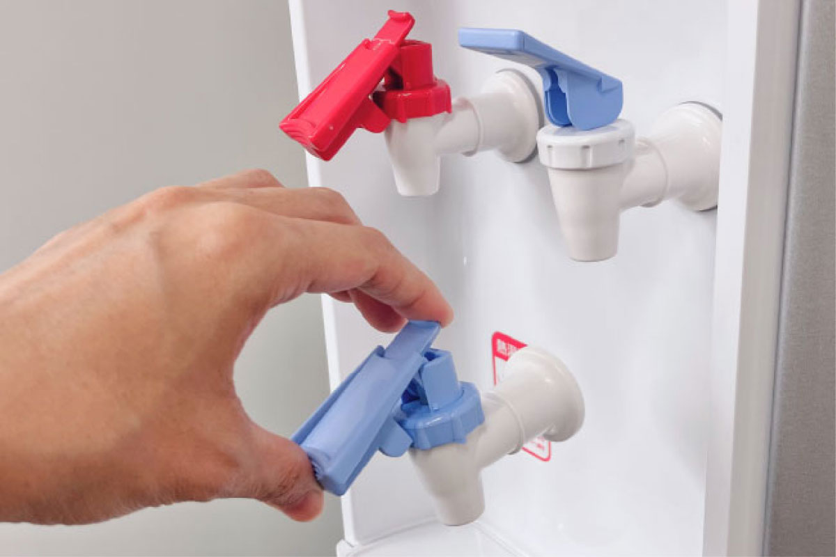 もしもの災害時に備えてウォーターサーバーの天然水を使いながら備蓄(ローリングストック)する使い方もおすすめです。停電時もレバーを押すことで常温の天然水が使えます。